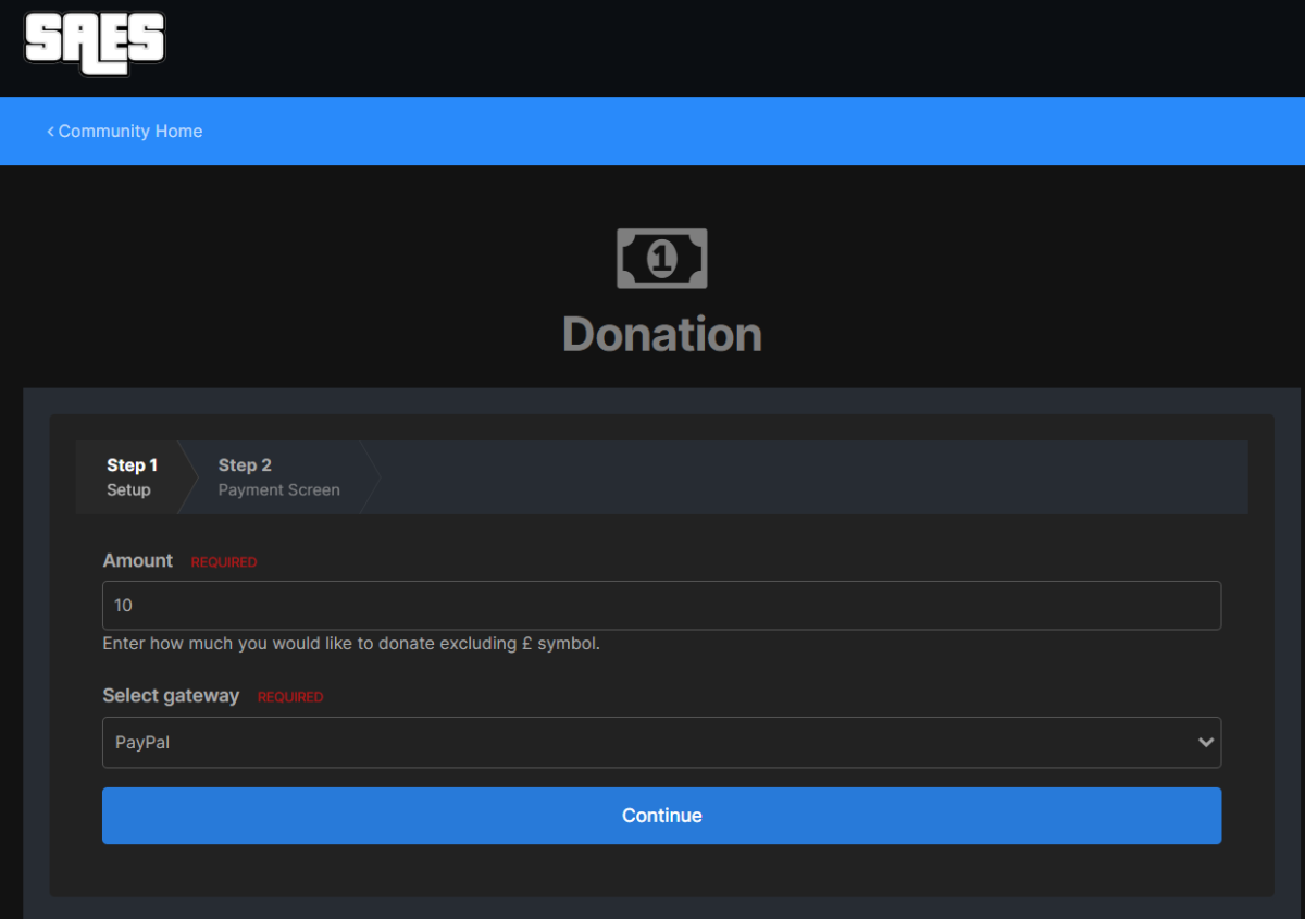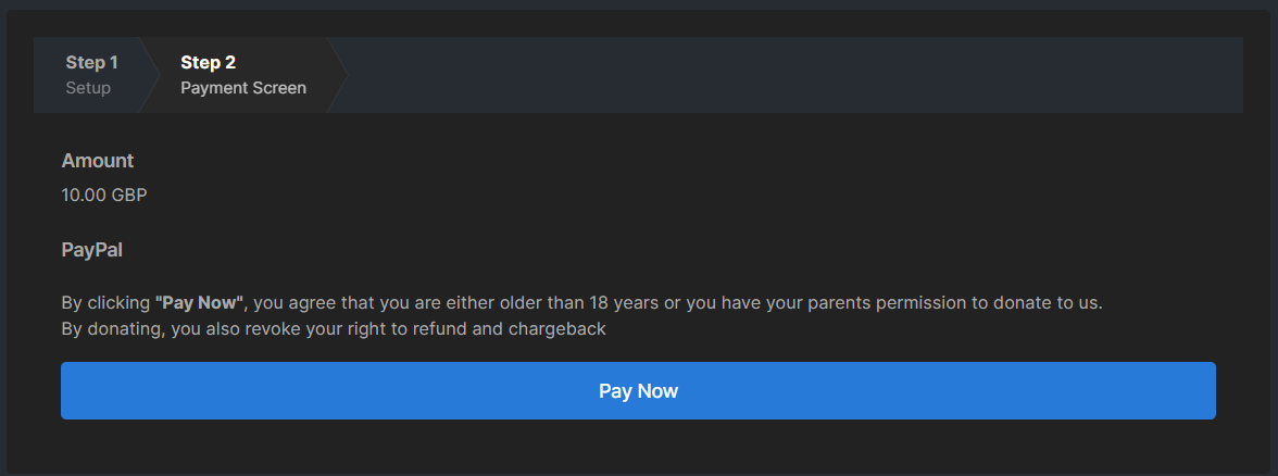 3. Enter the donation amount you've agreed and press continue and then "Pay Now".